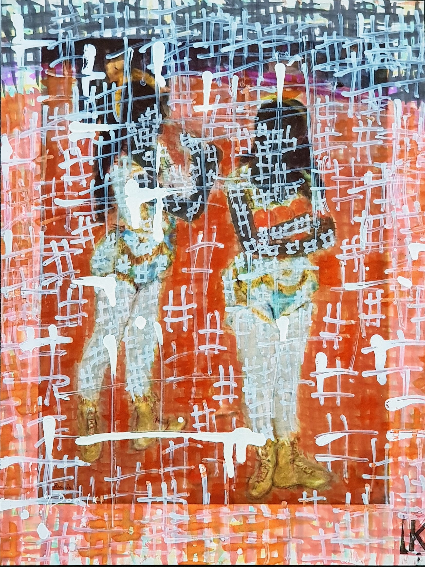TECHNIQUE : Encre pigmentée à base d'eau (POSCA), sur une reproduction de l’oeuvre de l’artiste, format 28x21 cm extrait d’un magazine d’art ou catalogue d’exposition, contrecollée sur papier aquarelle artistique noir 300g 21x29,7 cm.